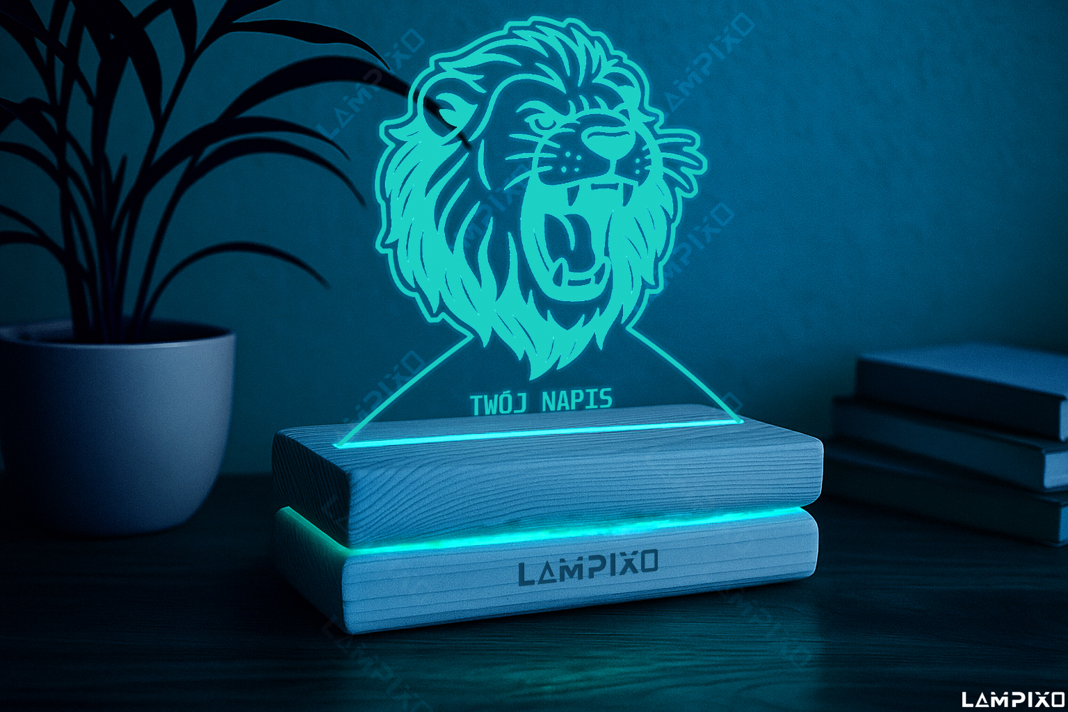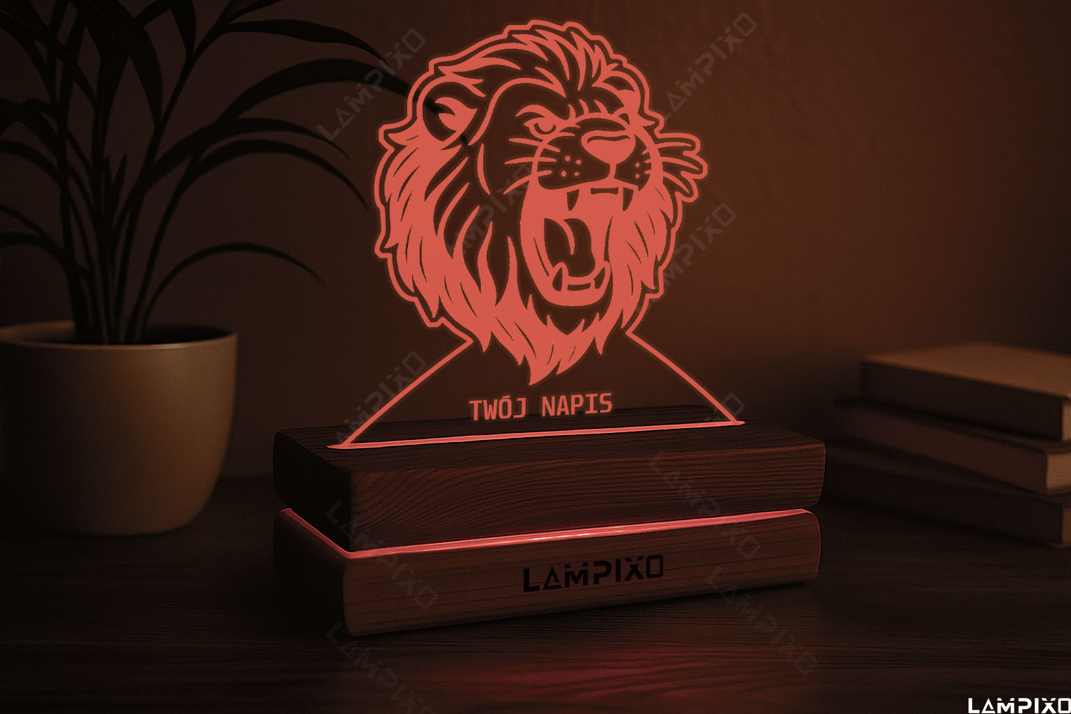 LAMPIXO Drewniana lampka LED RGB Lew